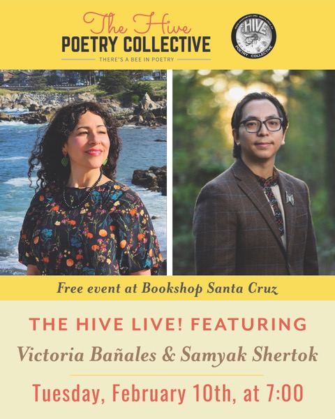 Join The Hive Poetry Collective as they host the next offering in their ongoing, bimonthly series The Hive Live! Tuesday, Jan. 14, 7 p.m. at Bookshop Santa Cruz, 1520 Pacific Ave., Santa Cruz, CA. Featured poets for the evening are Rick Barot and Cintia Santana. Register to attend by clicking here.