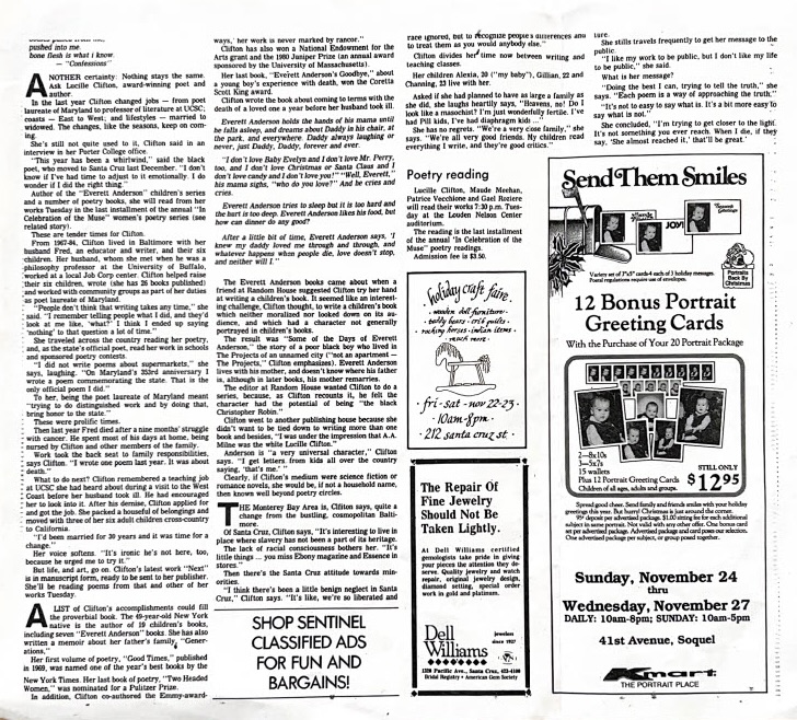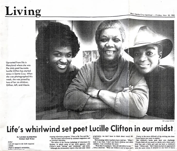 An interview with Lucille Clifton, Santa Cruz Sentinel, November 12th, 1985
