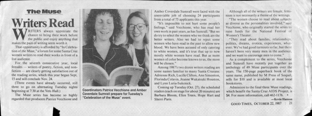 An article on the 7th annual In Celebration of the Muse, Good Times, October 22nd, 1987