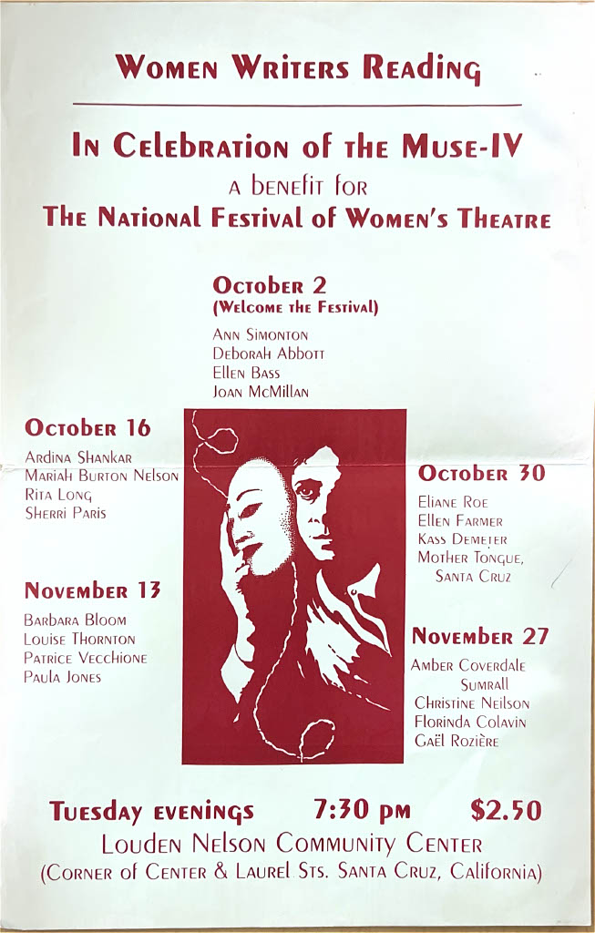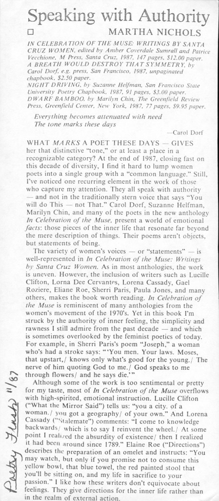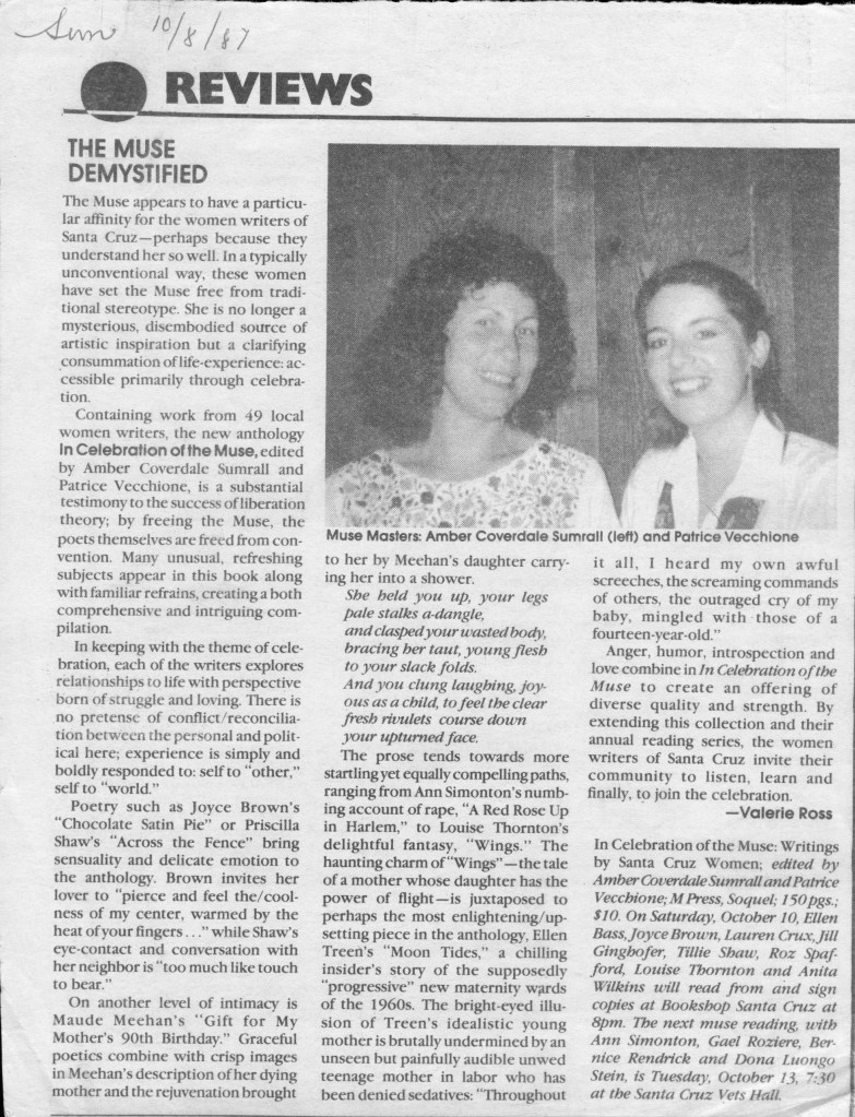 Article on Anthology In Celebration of the Muse: Writings by Santa Cruz Women, November 1987