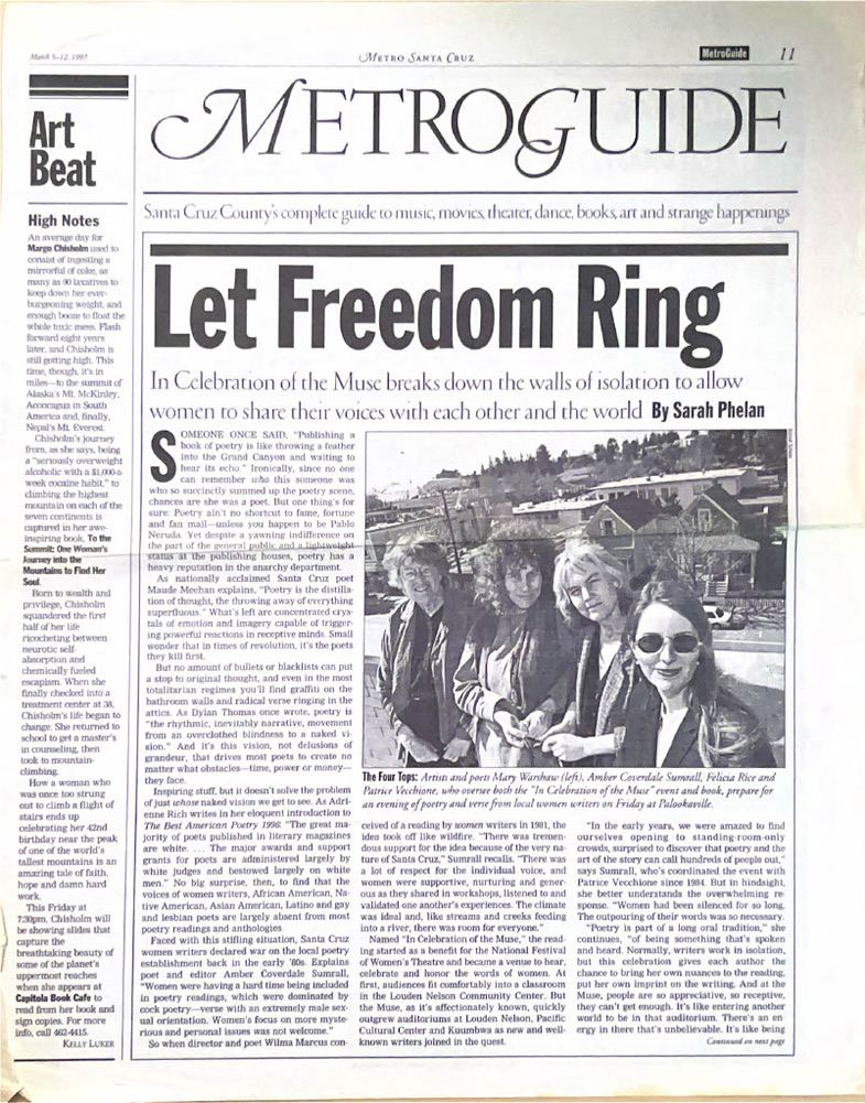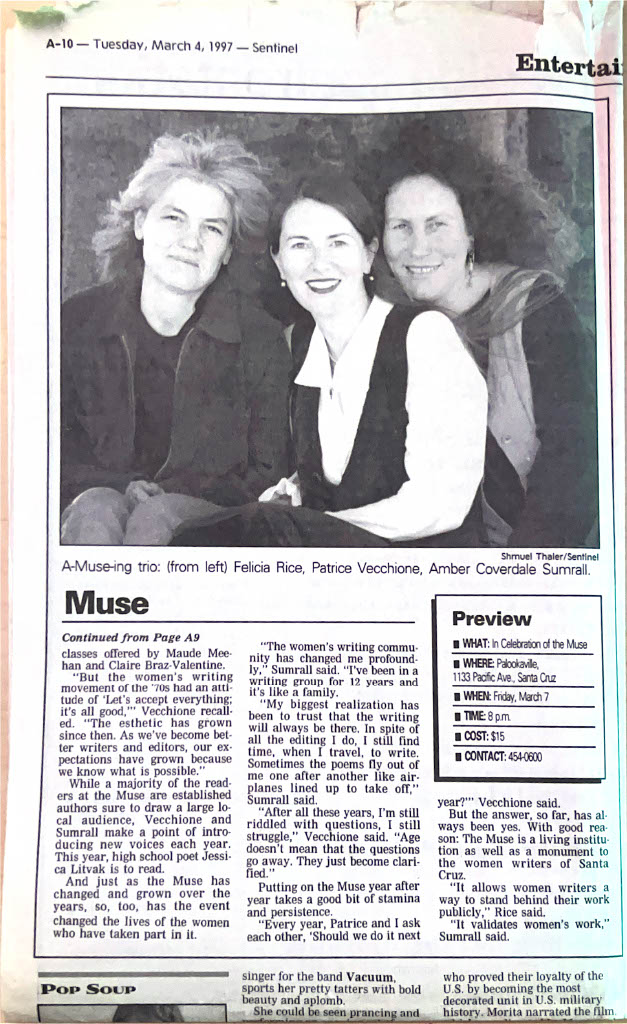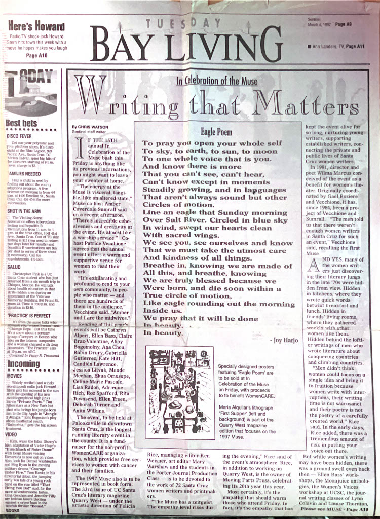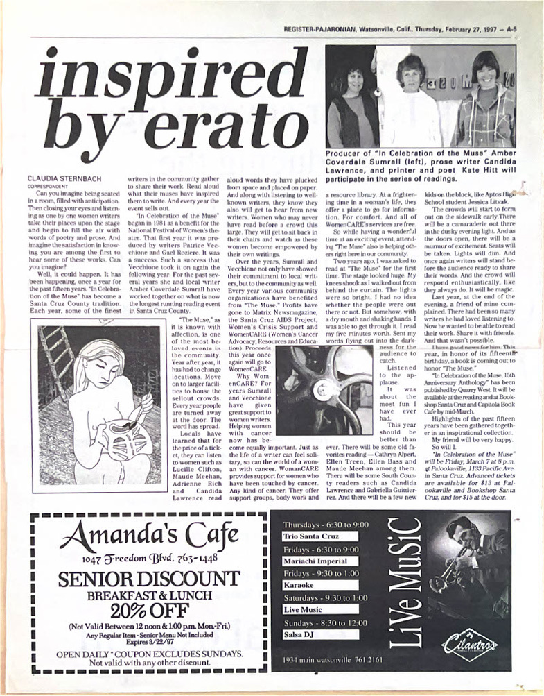 Article on the 15th annual In Celebration of the Muse, Santa Cruz Sentinel, March 4th, 1997