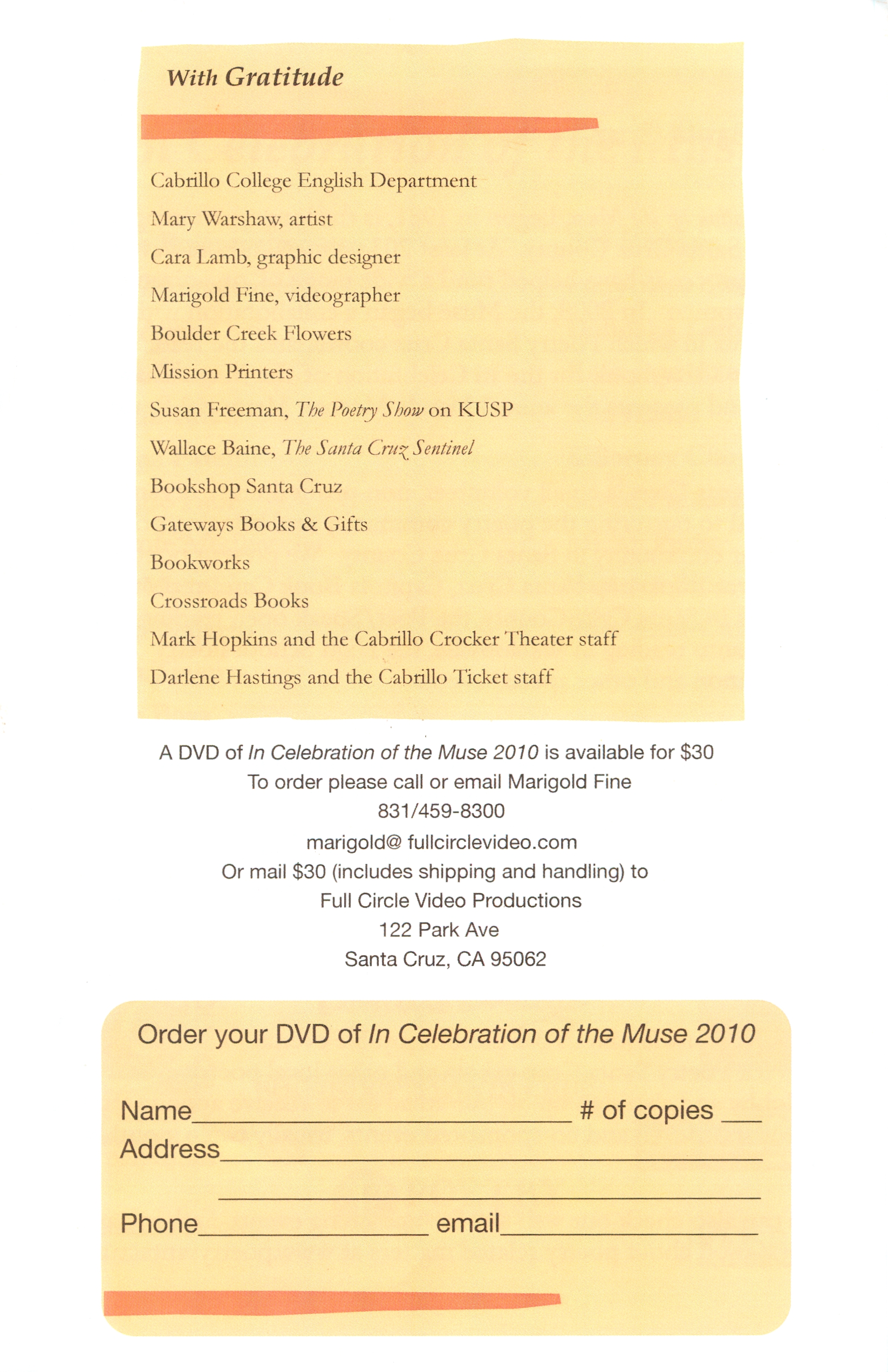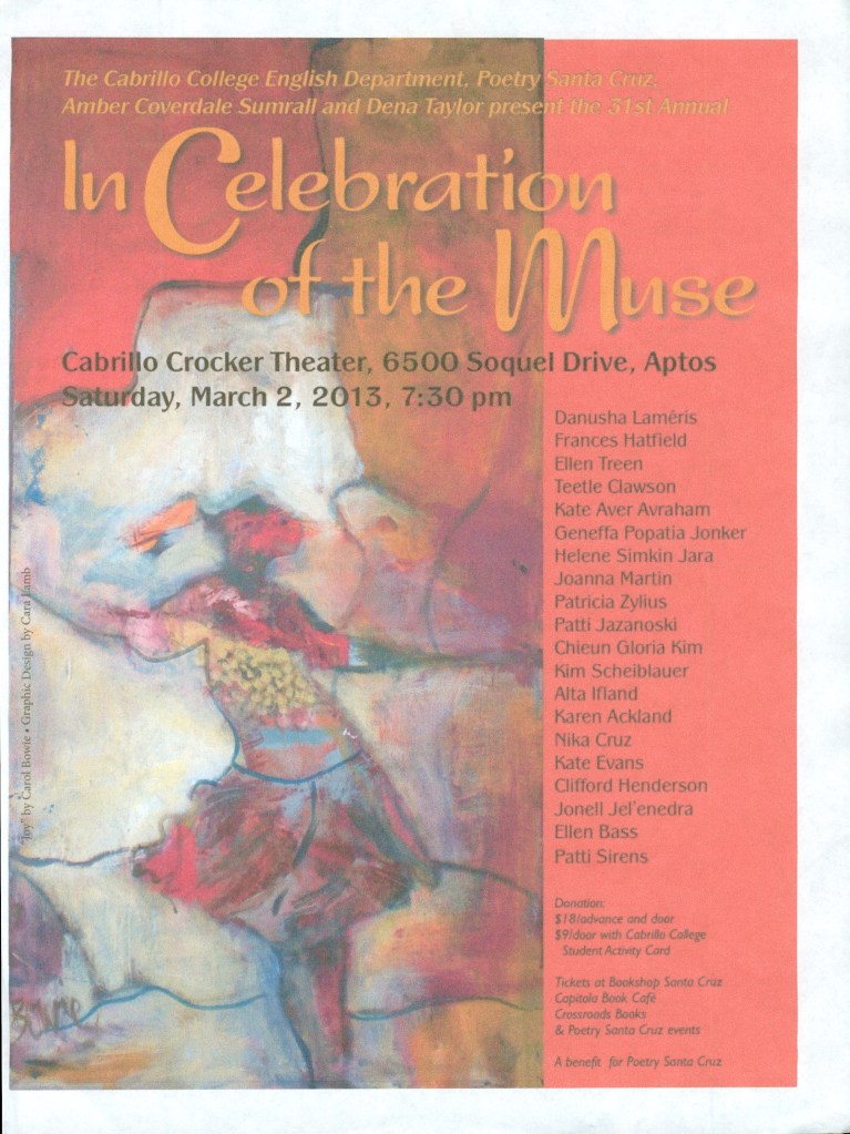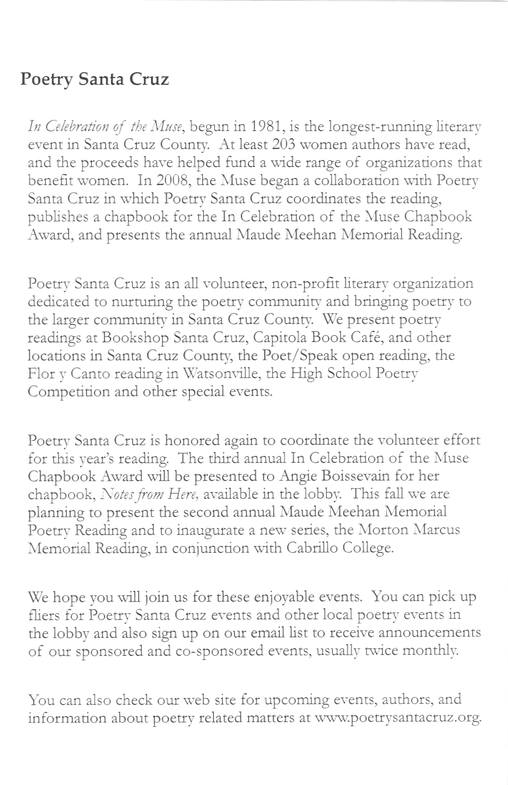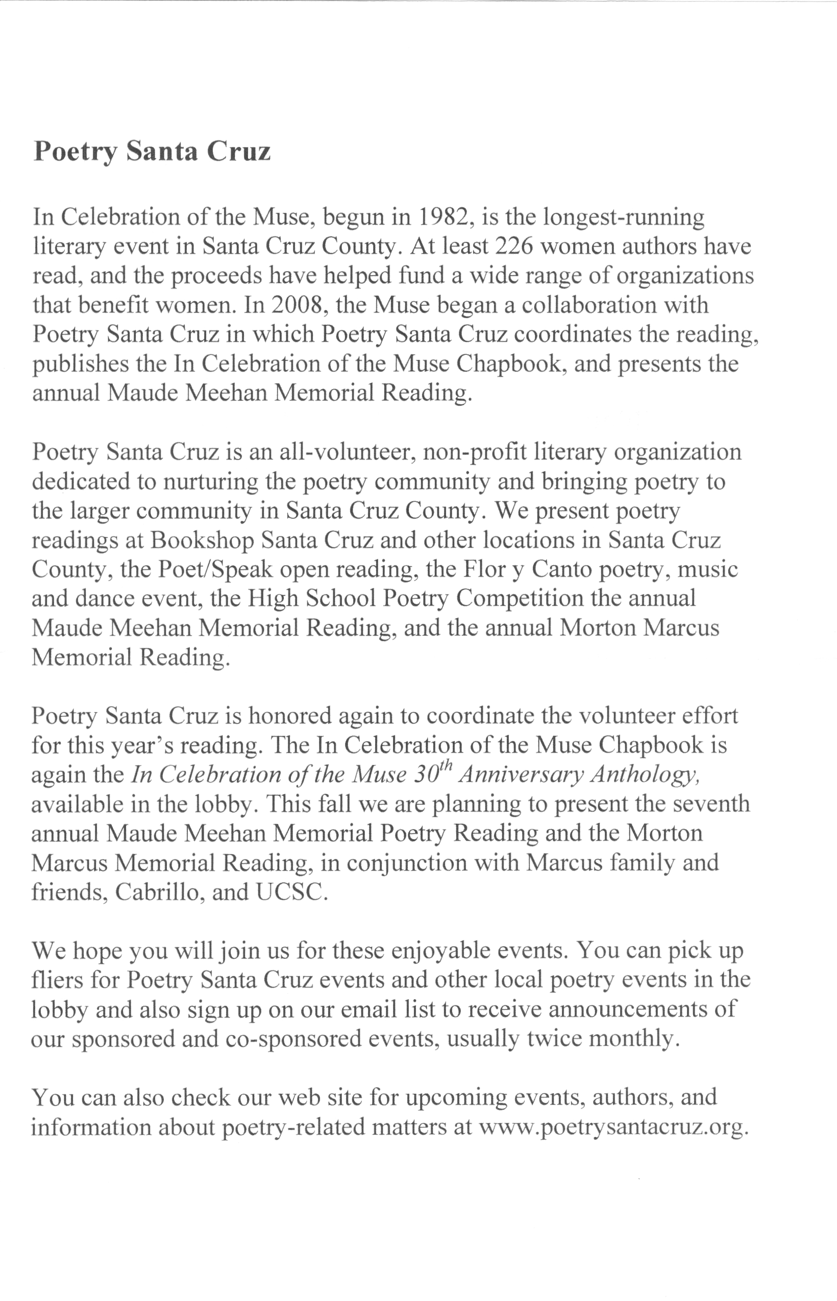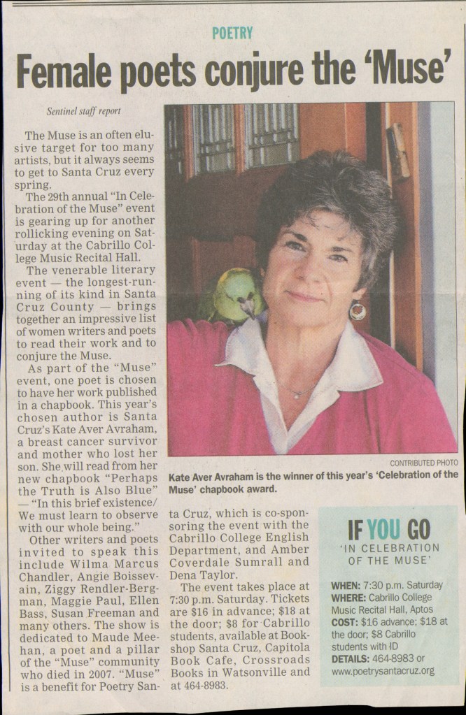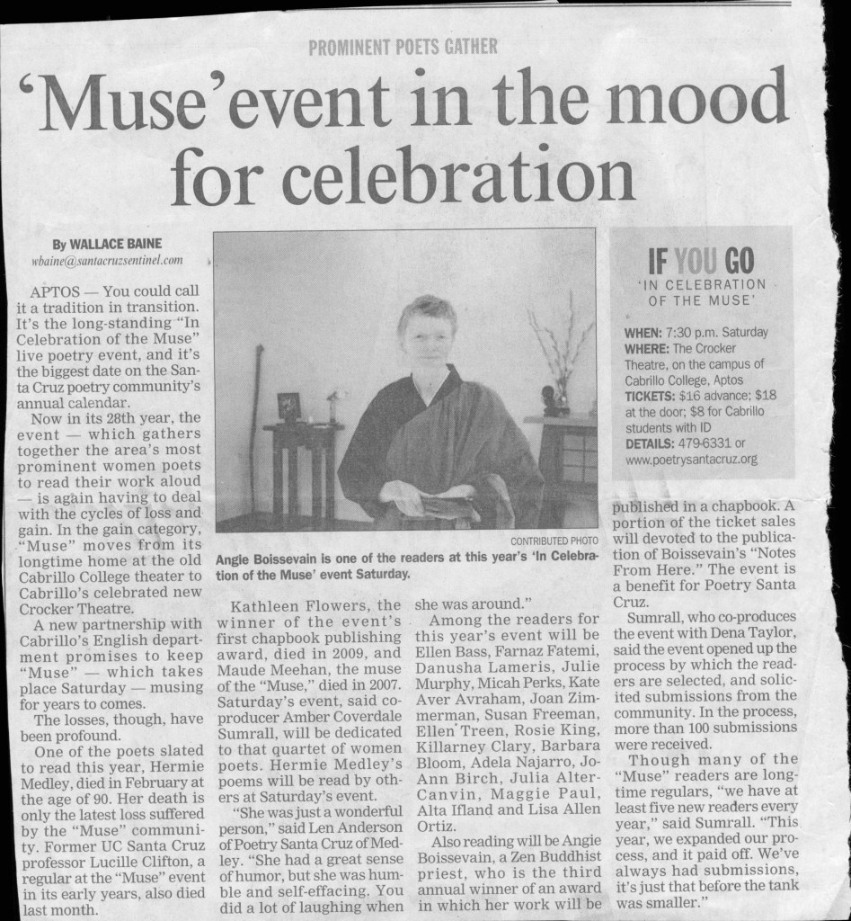 Article on the 28th annual In Celebration of the Muse, Santa Cruz Sentinel, March 2010