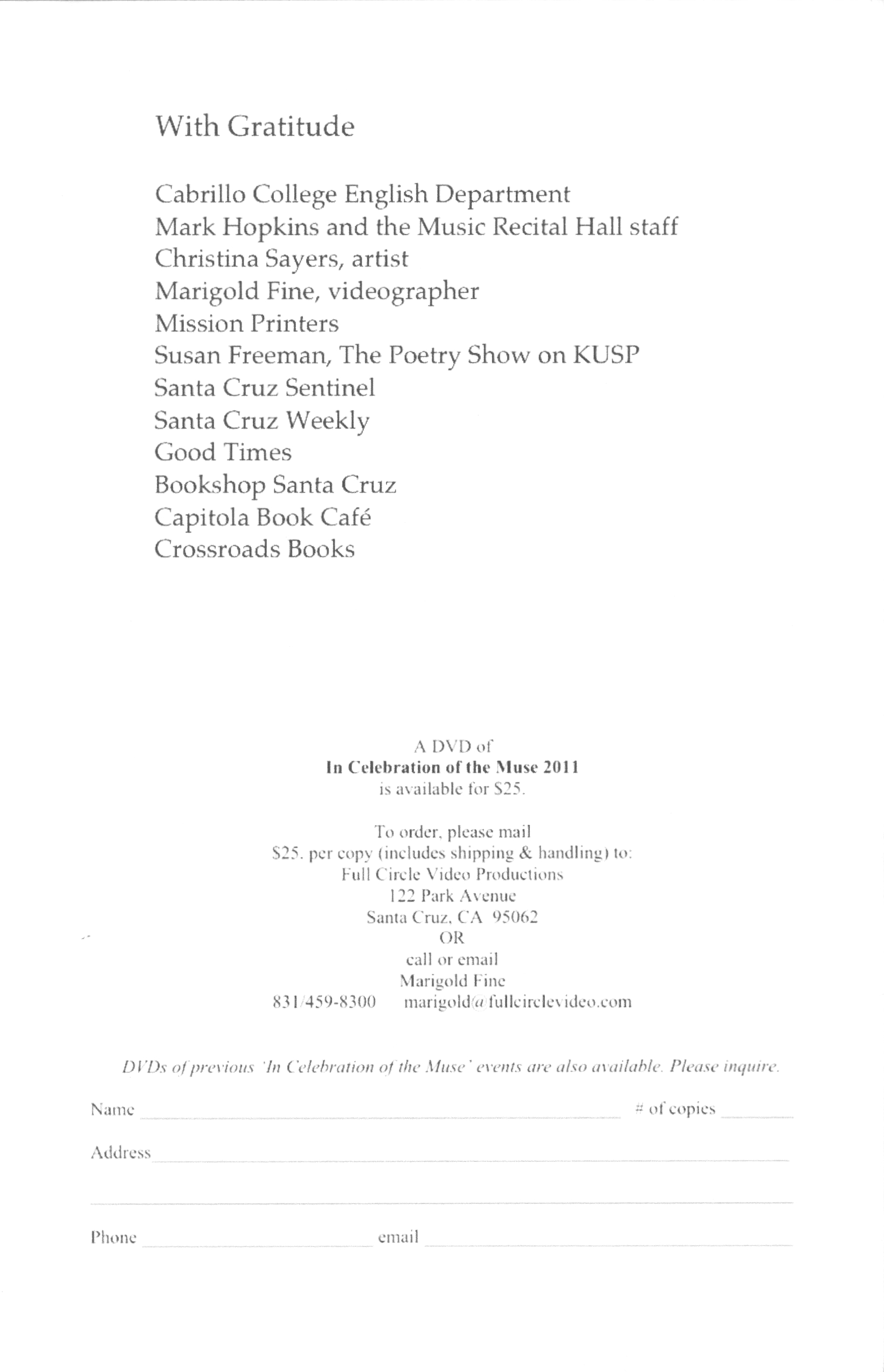 Article on the 29th annual In Celebration of the Muse, Santa Cruz Sentinel, 2011