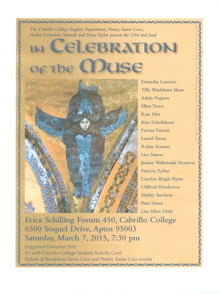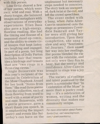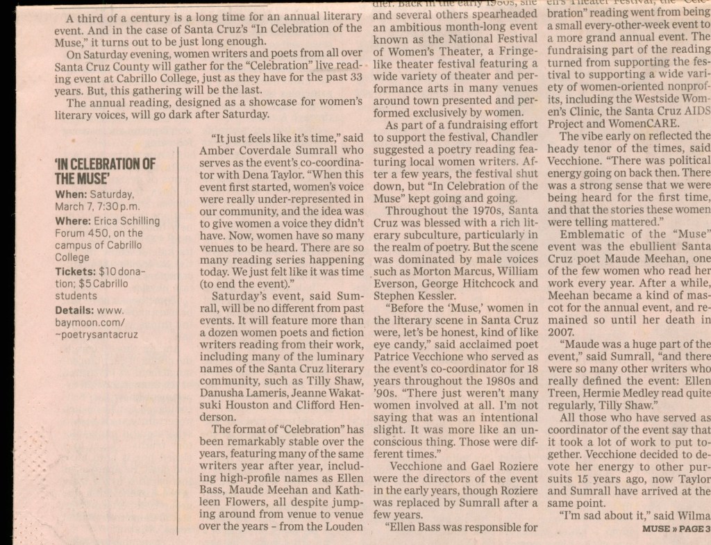 Article on the 33rd annual In Celebration of the Muse, Santa Cruz Sentinel, March 5th, 2015